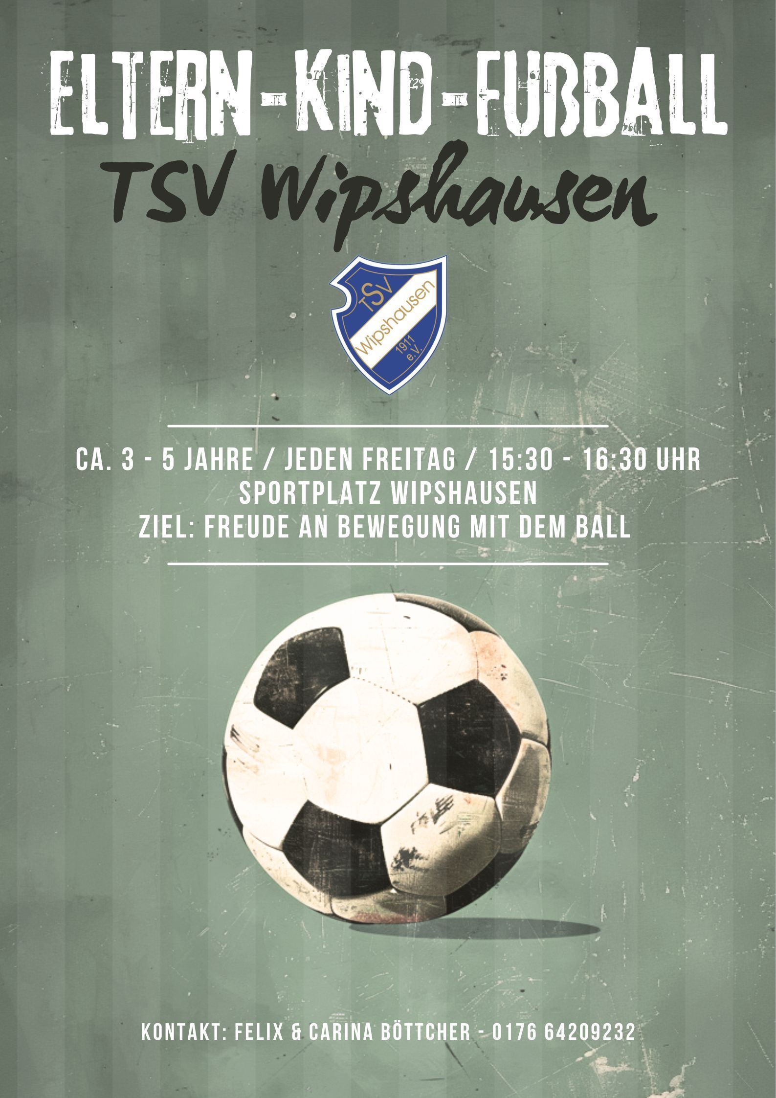 Kindern von ca. 3 bis 5 Jahren mit ihren Eltern wird jetzt jeden Freitag von 15:30 Uhr bis 16:30 Uhr Freude an der Bewegung mit Ball näher gebracht. Probiert Eltern-Kind-Fußball auf dem Sportplatz Wipshausen einfach mal aus.
